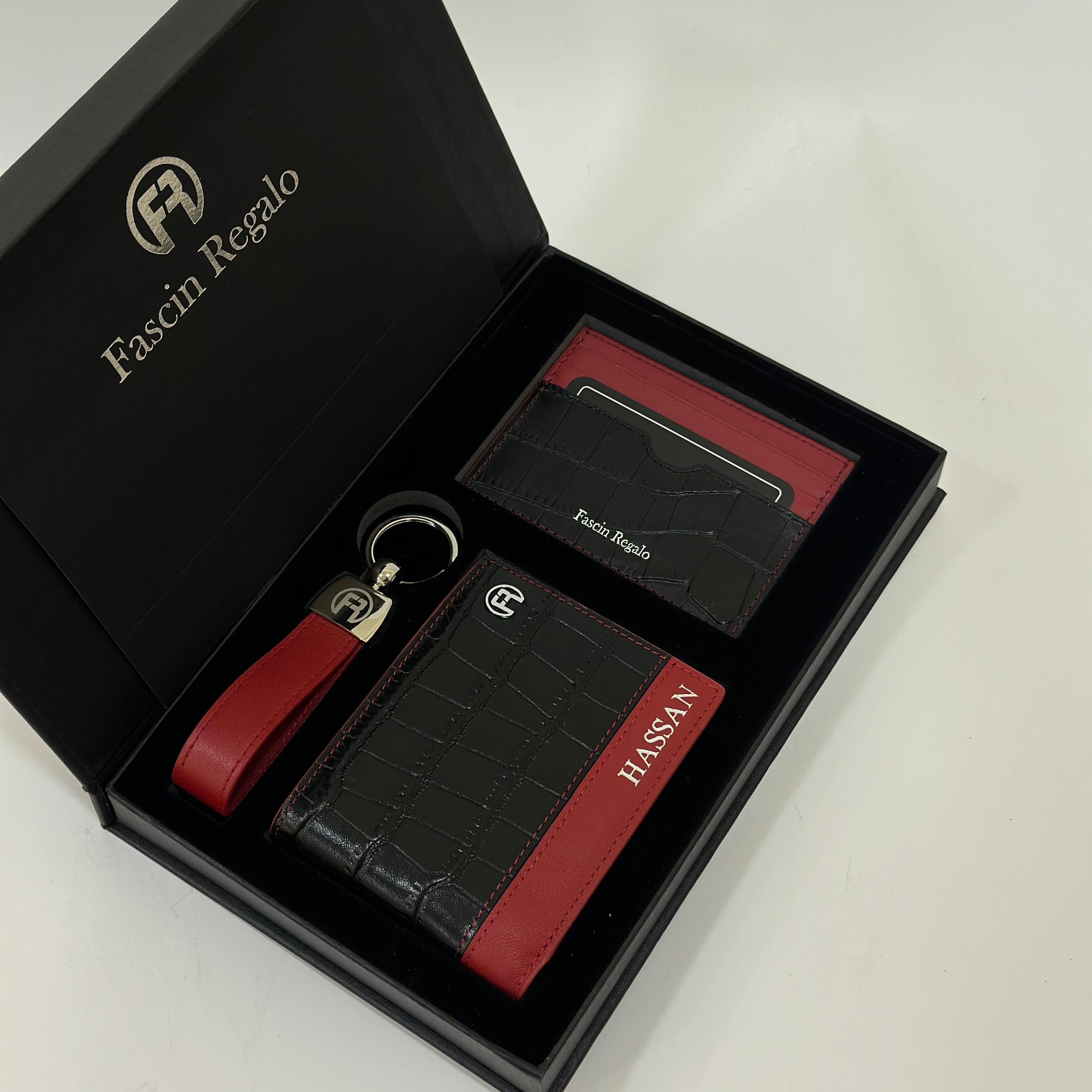تأتي مجموعة الهدايا الفاخرة هذه مع محفظة وحامل بطاقات وحامل مفاتيح. مصنوعة من جلد عالي الجودة حصريًا ومصممة جيدًا من قبل فريق Fascin Regalo. يتم استخدام بطانة البوليستر المتينة في منتجاتنا للحفاظ على الجودة وتلبية أقصى الاحتياجات. تقدم لك Fascin Regalo ألوانًا فريدة وأنيقة...
